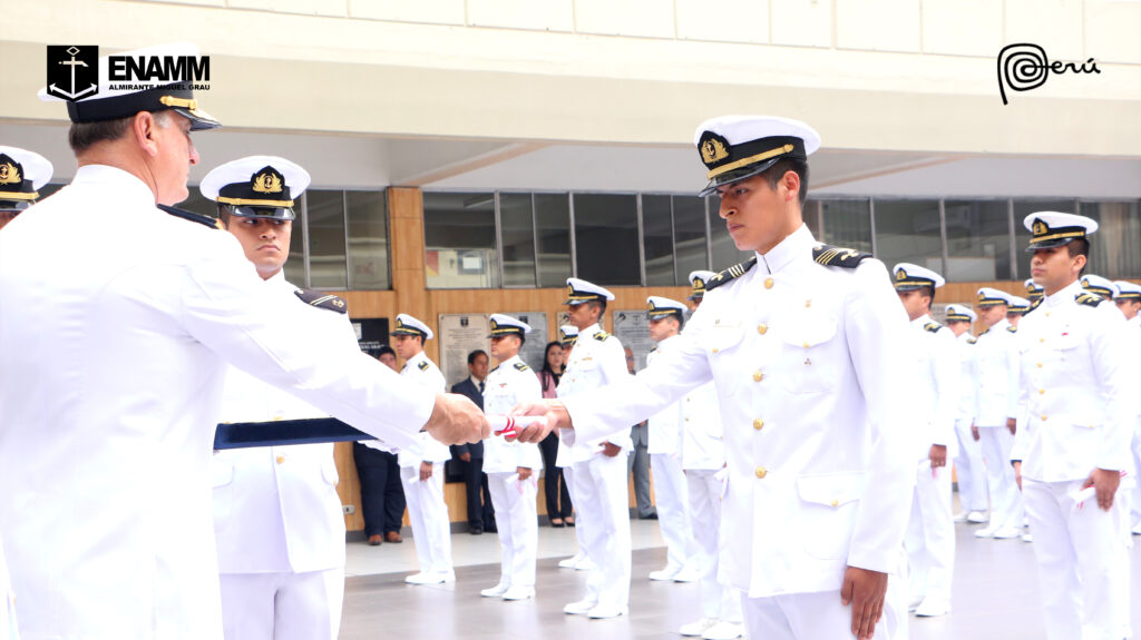 Esta importante ceremonia en el calendario de la escuela, fue presidida por el Señor Contralmirante Mario Héctor CACHO Pella, Director de Administración de Personal de la Marina, quien estuvo acompañado por el Señor Capitán de Navío Miguel Ángel DELGADO Céspedes, Director de la Escuela Nacional de Marina Mercante “Almirante Miguel Grau”; este reconocimiento valida el patriotismo y los valores de nuestros cadetes náuticos para defender los intereses soberanos de la patria, tal como lo demostró nuestro gran Almirante Don Miguel Grau Seminario.