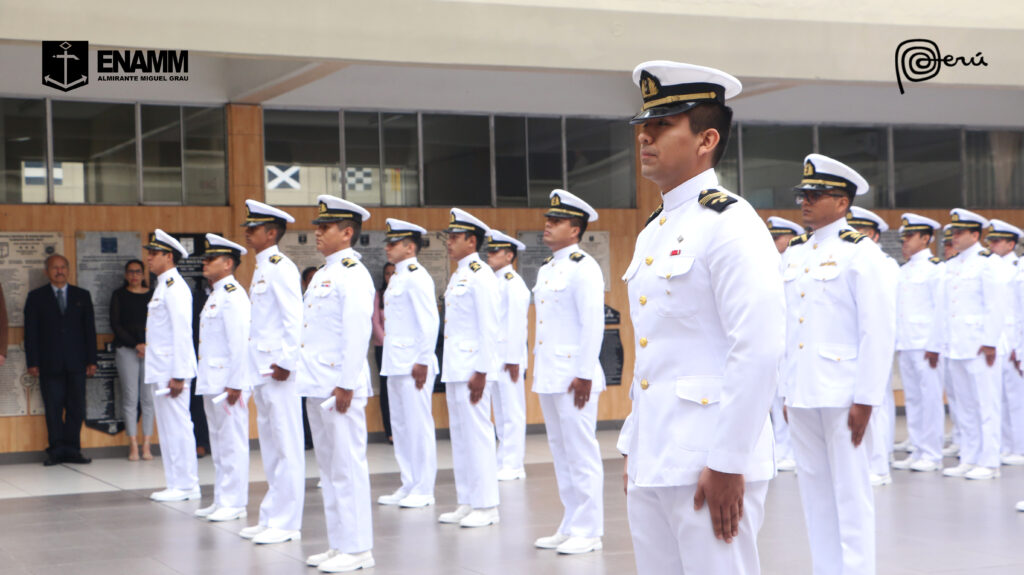 En el patio de Honor de la Escuela Nacional de Marina Mercante “Almirante Miguel Grau”- ENAMM, se realizó la Ceremonia de Reconocimiento como oficiales de la Reserva Naval a los Cadetes Náuticos de 4to año con mención en Puente y Máquinas del Programa de Marina Mercante de la Promoción XLVII y de la Promoción XLVIII.