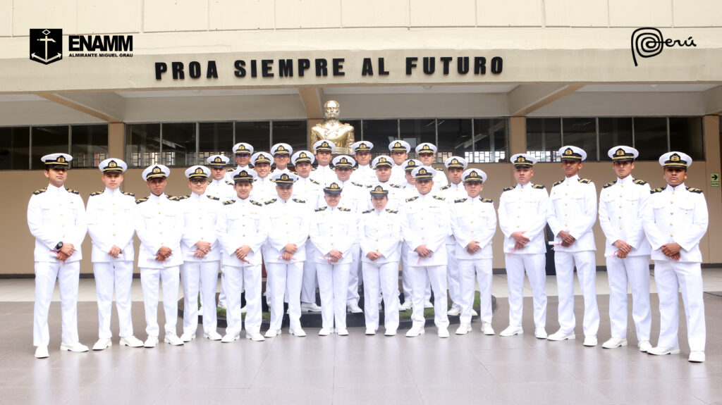 En el patio de Honor de la Escuela Nacional de Marina Mercante “Almirante Miguel Grau”- ENAMM, se realizó la Ceremonia de Reconocimiento como oficiales de la Reserva Naval a los Cadetes Náuticos de 4to año con mención en Puente y Máquinas del Programa de Marina Mercante de la Promoción XLVII y de la Promoción XLVIII.