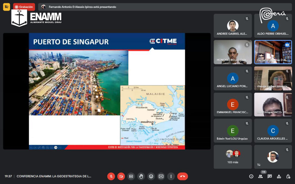 La Escuela Nacional de Marina Mercante “Almirante Miguel Grau” a través de la Dirección Académica de Posgrado continúa con el ciclo de Conferencias Magistrales a los alumnos de la Maestría de Administración Marítima, Portuaria y Pesquera, Maestría en Gestión Naviera, Doctorado en Ciencias Marítimas y Público en general, con la finalidad de transmitir fundamentos técnicos y enfoques actualizados de una rama del saber.