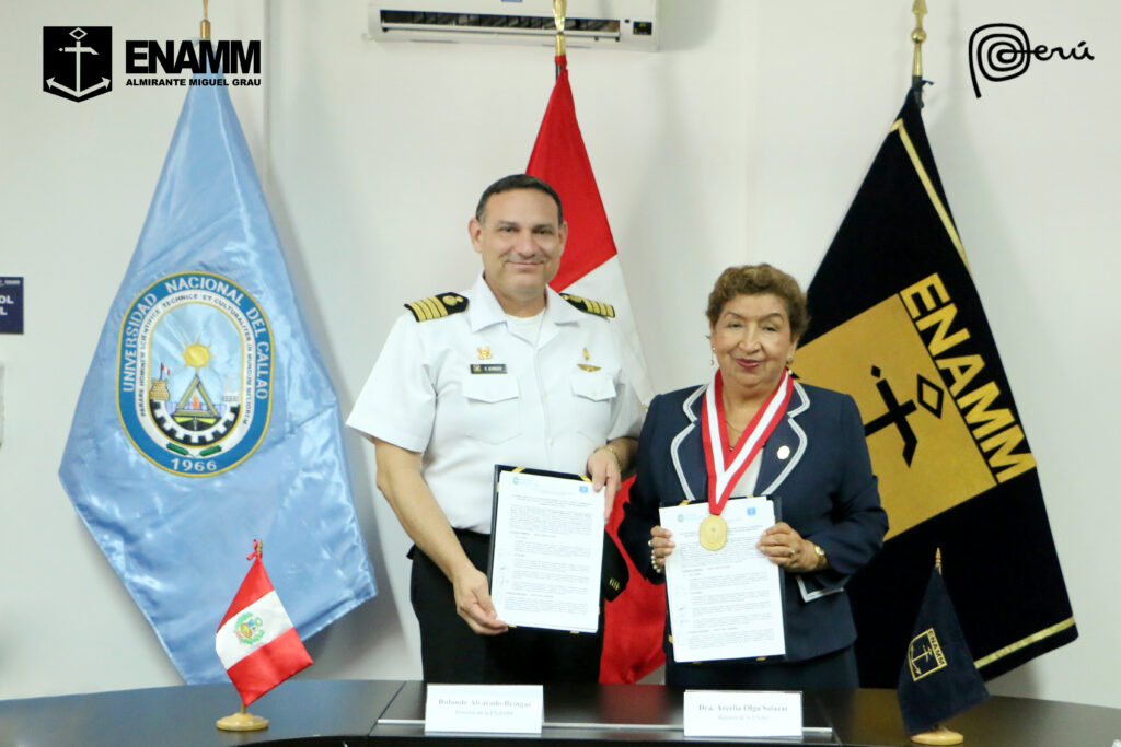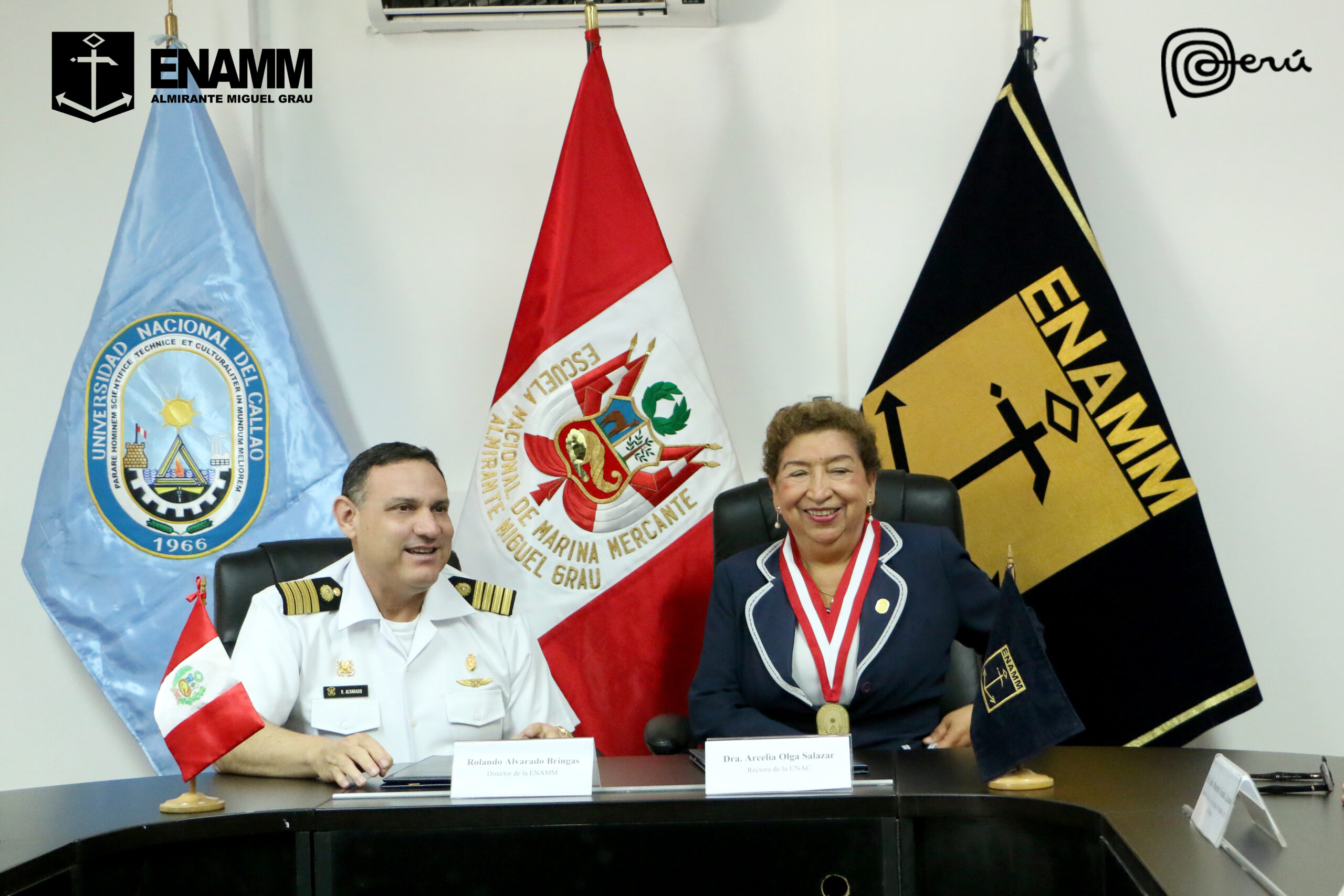 La Escuela Nacional de Marina Mercante “Almirante Miguel Grau” realizó la firma del convenio con la Universidad Nacional del Callao – UNAC, el cual tiene por objeto establecer el marco general para desarrollar mecanismos e instrumentos de colaboración mutua y beneficio, con el propósito de llevar a cabo Programas de Apoyo Recíproco en el área académica, docente y de investigación.
