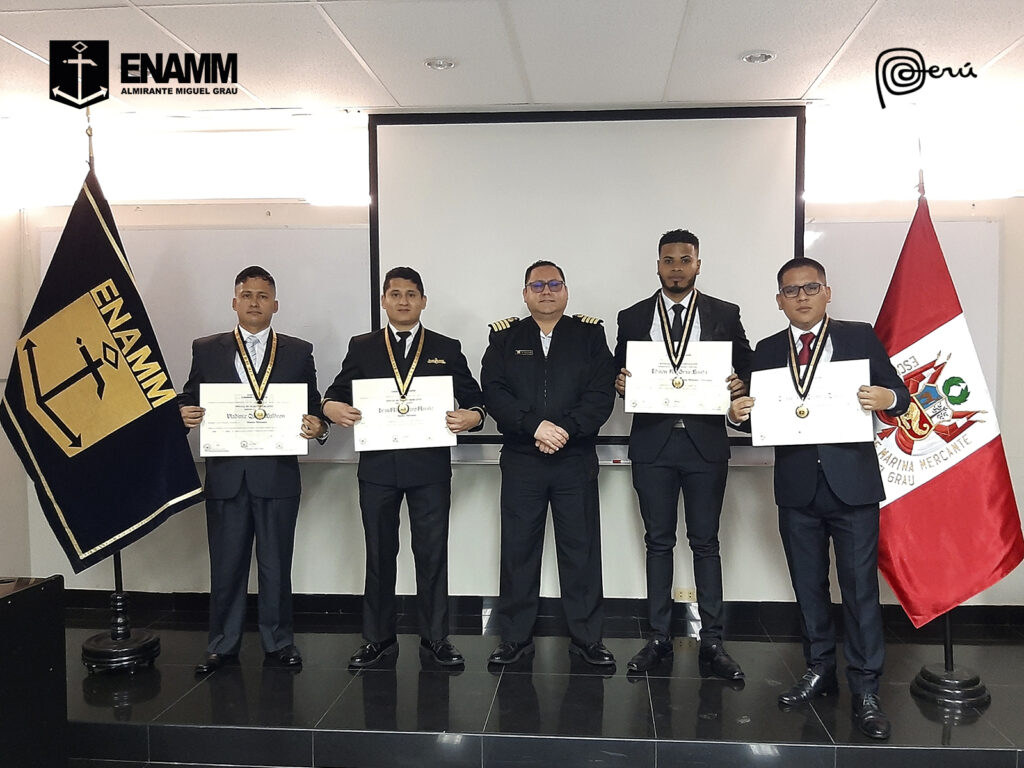 La Escuela Nacional de Marina Mercante “Almirante Miguel Grau”, felicita a los egresados Vladimir QUINTO Baldeón; Ivan Miller LLARO Mariño, quienes recibieron el Título a nombre de la nación de Marina Mercante. También extendemos nuestras felicitaciones a Edison Rai GRAU Banda y Cesar Jair CHAVEZ Turin, quienes recibieron el Título a nombre de la nación de Administración Marítima y Portuaria.